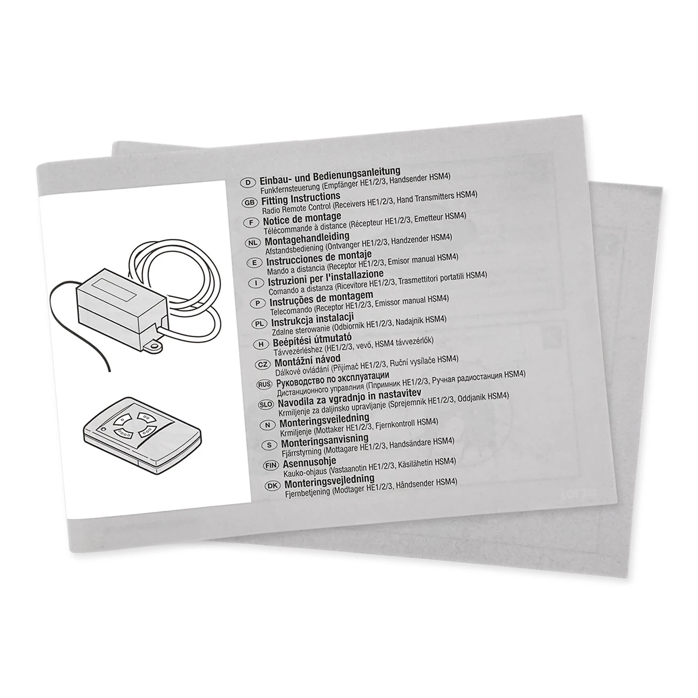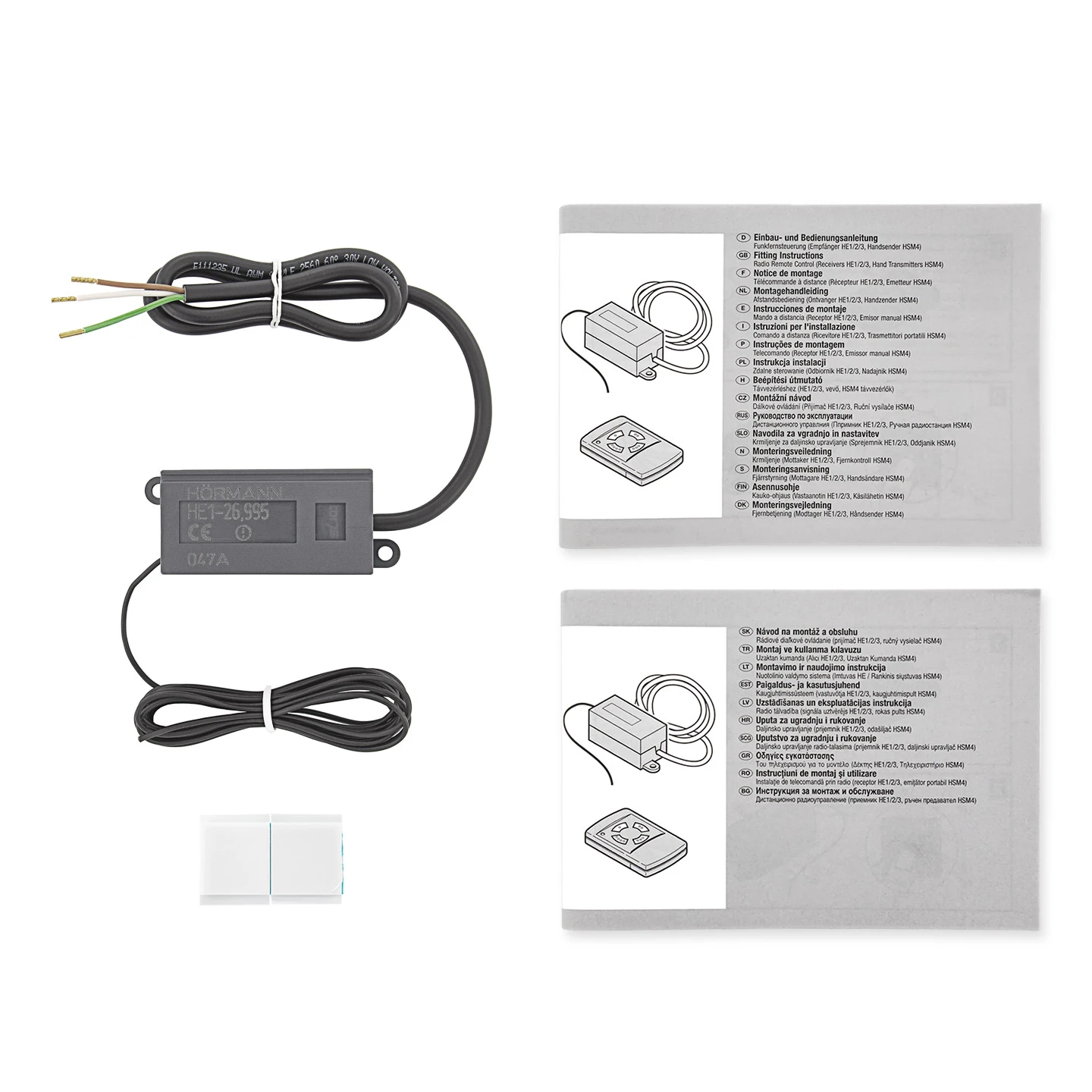 Für die Verwendung dieses Funkempfängers ist zudem mindestens ein vorhandener Hörmann Handsender mit der Frequenz 26,995 MHz erforderlich. Kompatibel sind unter anderem die Modelle Hörmann Handsender HS 4, 26,995 MHz (Art-Nr. 437607) und Hörmann Handsender HSM 4, 26,995 MHz (Art-Nr. 437231). Es waren aber auch Sender der Typen DH 01, DH 02, DH 03, DH 04, DHM 01, DHM 02, DHM 04 u. RC 2000 A erhältlich, die mit der 26,995 MHz Frequenz arbeiteten.