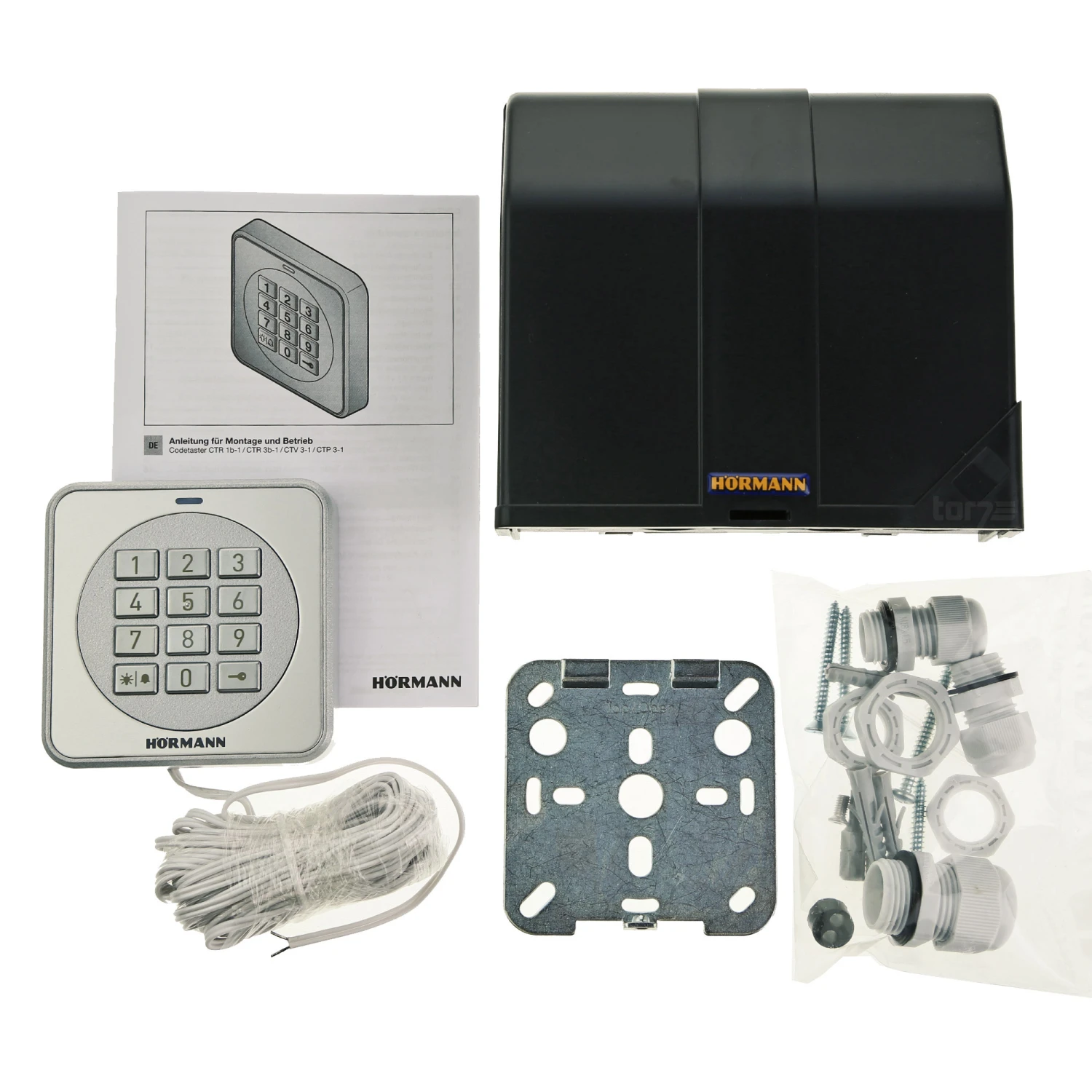Bitte beachten Sie, dass im Set keine Netzzuleitung enthalten ist! Diese kann separat bei uns im Shop erworben werden. Für die Stromversorgung mit 24 V und für die Impulsgabe an den Antrieb können die Hörmann Anschlussleitung ASL verwendet werden, die in drei verschiedenen Längen (2 m, 10 m und 50 m) erhältlich sind. Bei einer Spannungsversorgung von 230 V können Sie auf die Hörmann Anschlussleitung ZL 1 zurückgreifen.
