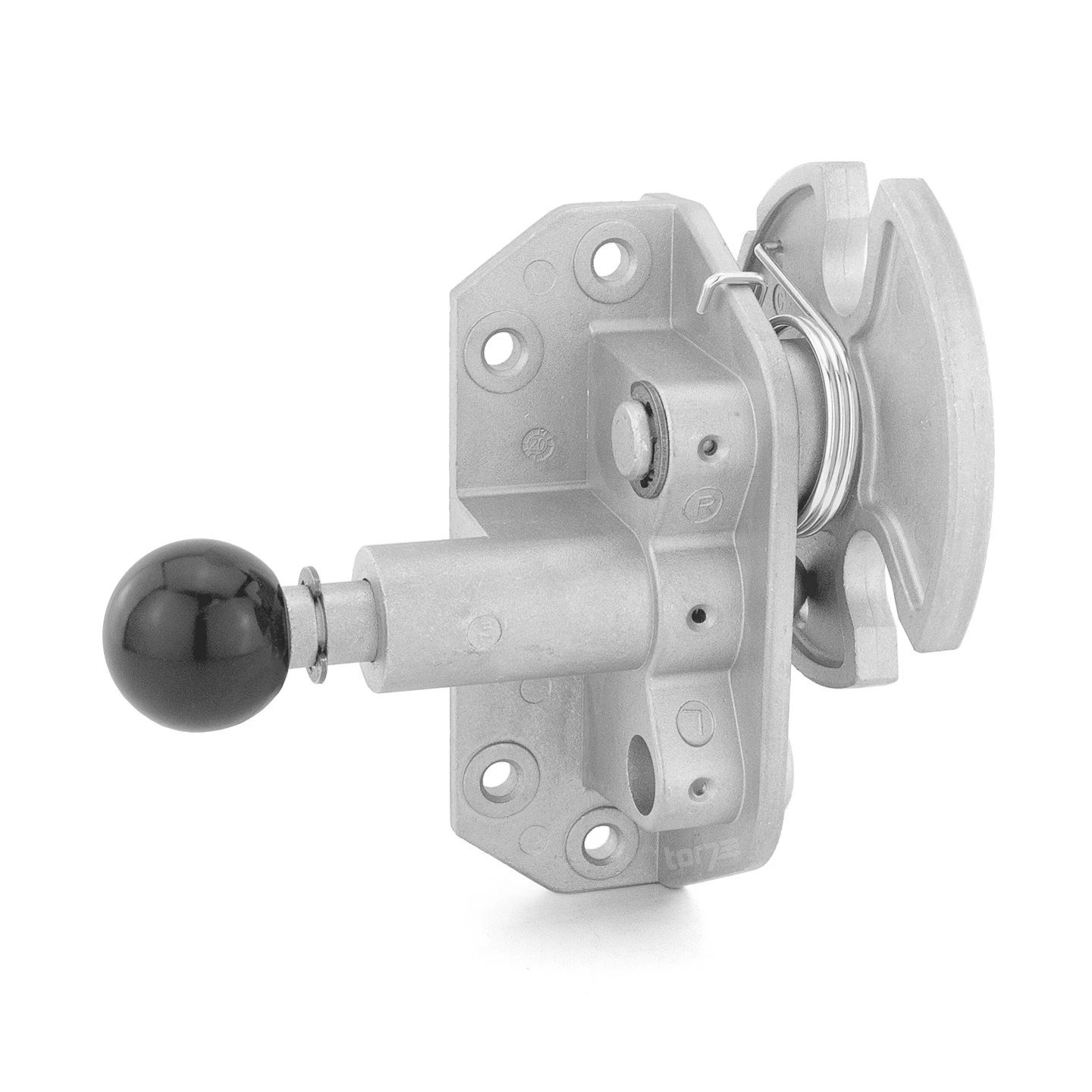 Diese Innenverriegelung besteht aus einem Drehriegel, der auf die rechte Torseite ausgerichtet ist. Zur Bedienung ist ein Kugelknauf angebracht, über den sich der Riegel ein- und ausdrehen lässt. Da es sich um einen einfachen Innenriegel handelt sind keine weiteren Teile wie z. B. ein Schubriegelgestänge oder eine Torgriffgarnitur erforderlich. Eine solche Hörmann Verriegelung Innenbedienung, Drehriegel rechts sollte allerdings nur an Toren und Objekten verwendet werden, zu denen es mindestens einen weiteren Zugang gibt.