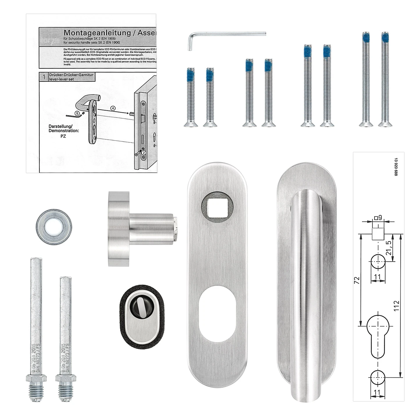 - 1 x Steinau FS ES1-K Sicherheitsbeschlag, Typ D 510, Edelstahl matt