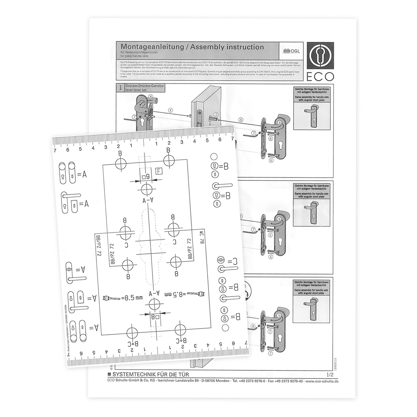 • passend für Holz- u. Stahltüren mit Türstärken von 40 bis 65 mm